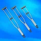 Patented design features push button height adjustment. Lightweight, anodized aluminum with solid one-piece frame. High impact plastic armrests and contoured, padded non-rotating handgrips. Rubber tips reinforced with metal inserts for longer wear. Weight capacity 250 lbs, 3 year limited warranty. Junior users: 4 ft. 6 in. - 5 ft. 2 in.